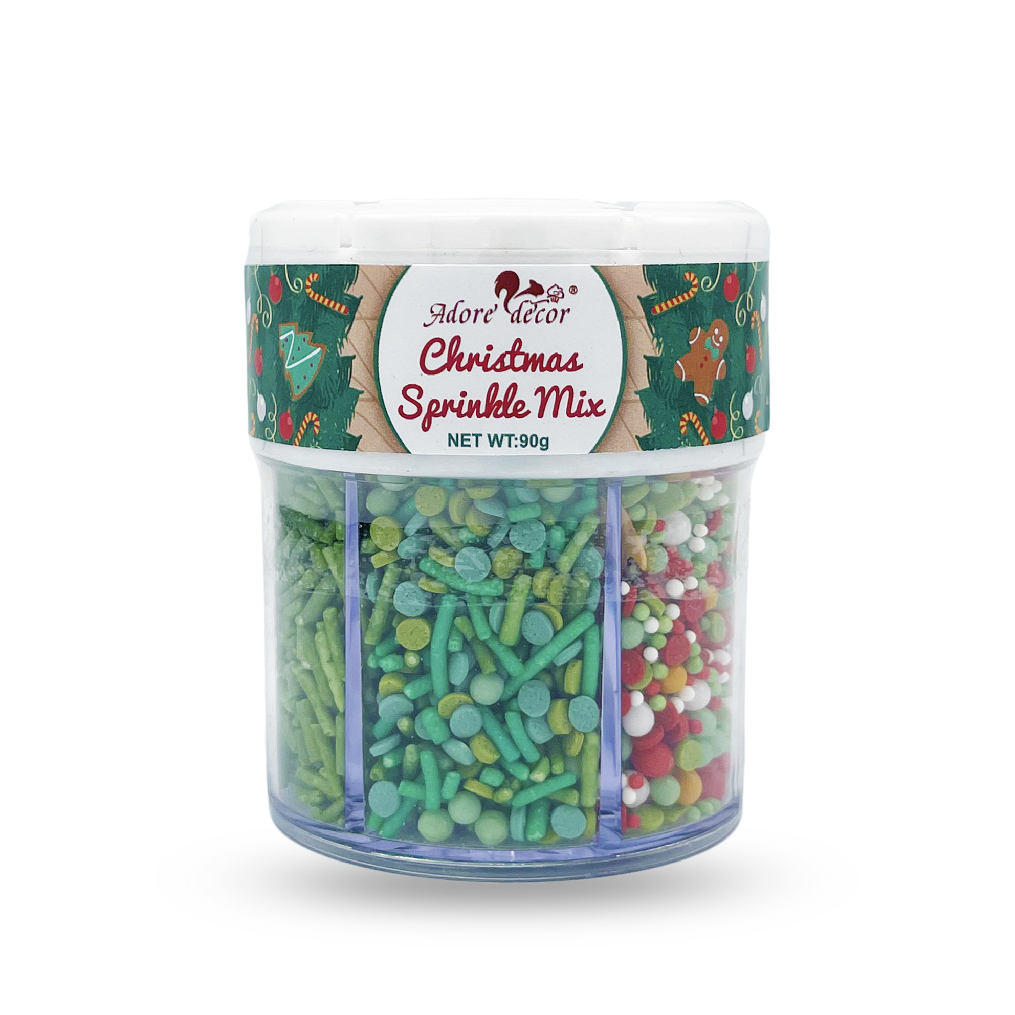 Bring festive cheer to your holiday baking with the Christmas 4 Cell Jar! This jar contains four delightful sprinkle blends in vibrant, seasonal colors, perfect for decorating cakes, cupcakes, cookies, and more. Each compartment keeps sprinkles fresh and organized, making it easy to mix and match for creative, colorful designs.